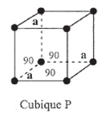 L'égalité des paramètres de maille et angles droits correspondent à une maille cubique primitive.